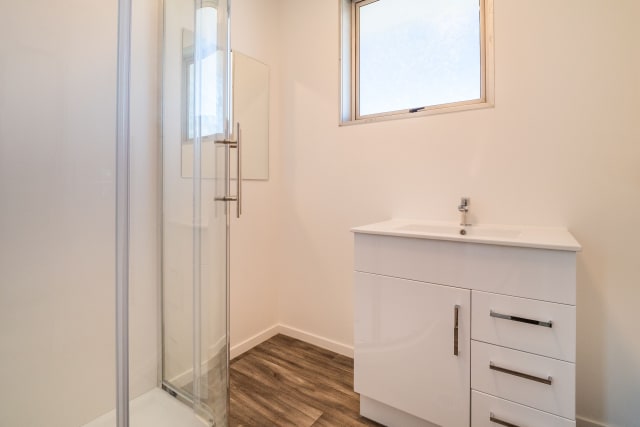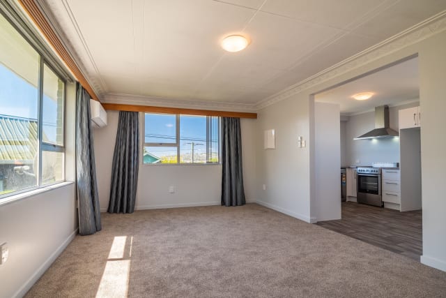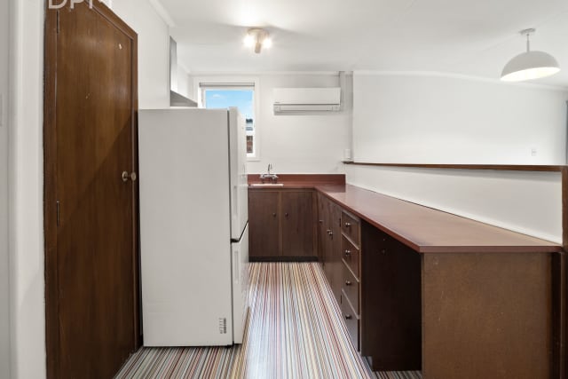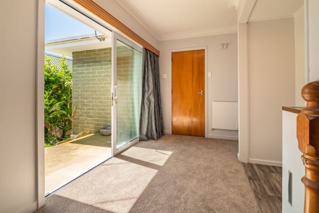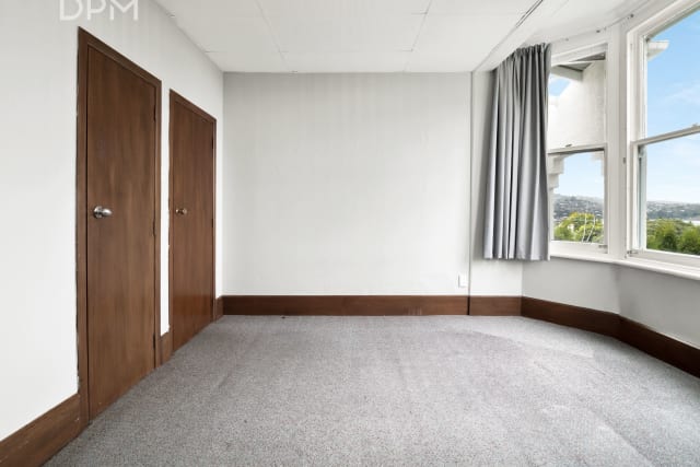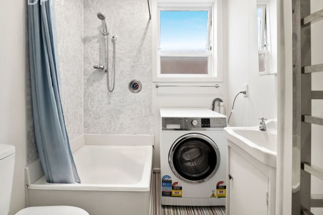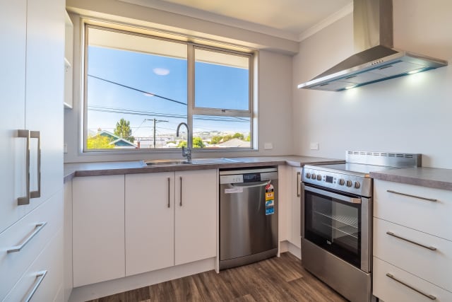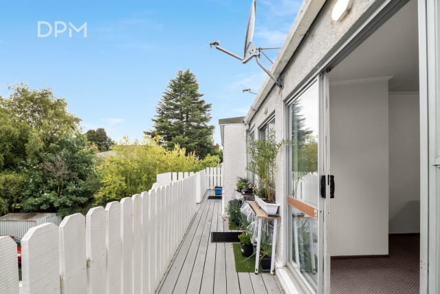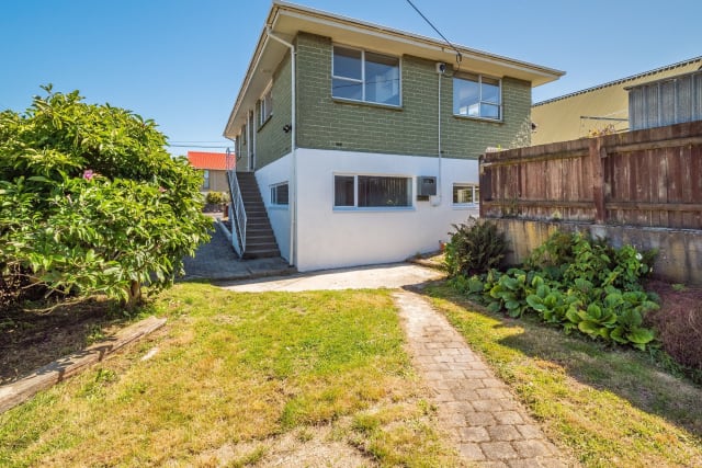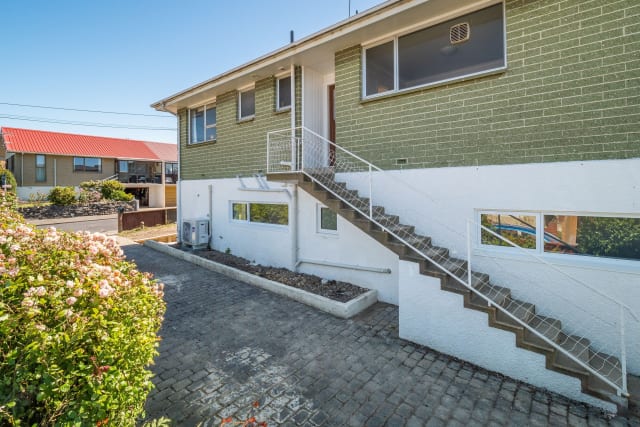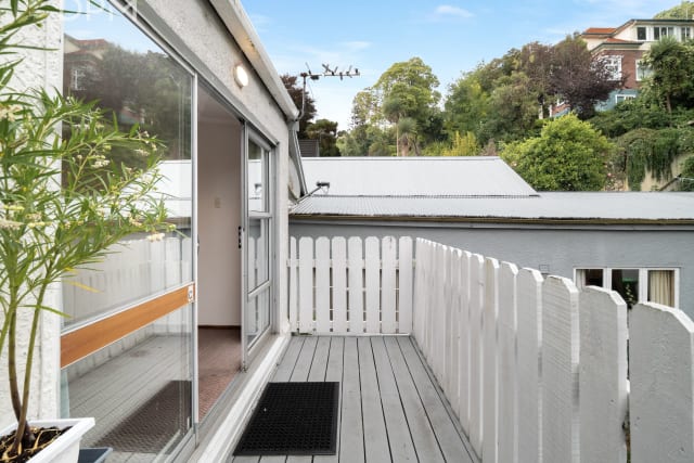 On the ground floor is the main living/kitchen area, bedroom and bathroom with laundry. Upstairs is a large bedroom with great views over Dunedin City and a bathroom with a shower and a separate bathtub.