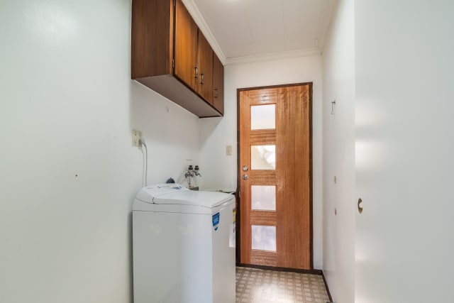 The layout is practical, with a central bathroom complemented by a separate toilet and laundry for added convenience.